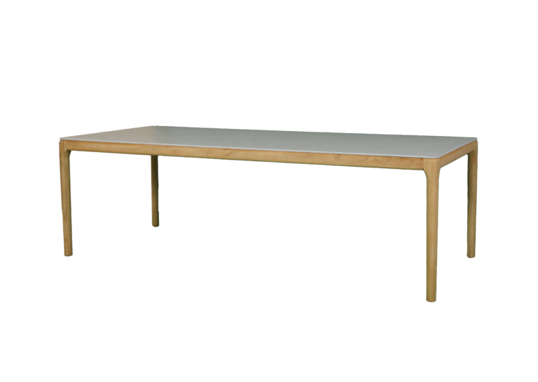 Ett maffigt bord med en helt underhållsfri bordsskiva i keramik. Här slipper du oroa dig för att regn eller sol skall påverka skivan, som har samma egenskaper som en klinkerplatta. Stommen är i teak, ett fantastiskt träslag som du kan välja att olja in eller låta bli vackert grått. Bordet har 6 sittplatser med gott om plats att sitta en (eller till och med två) på varje kortända