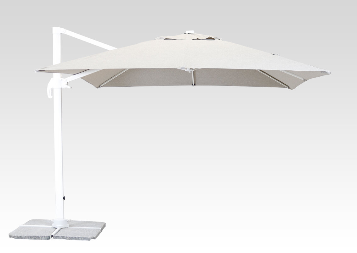 Sky är ett mycket praktiskt och bra hängparasoll med en arm som gör att ”taket” hänger från sidan. Vinkeln går enkelt att justera med hjälp av handtaget som skjuts upp och ner längs stången. Tack vara att det frihängande parasollet är väl balbanserat så krävs inte mycket kraft för att föra handtaget upp och ner längs sidan. Det är också med hjälp av handtaget och veven som man fäller upp och ner det hängparasollet.