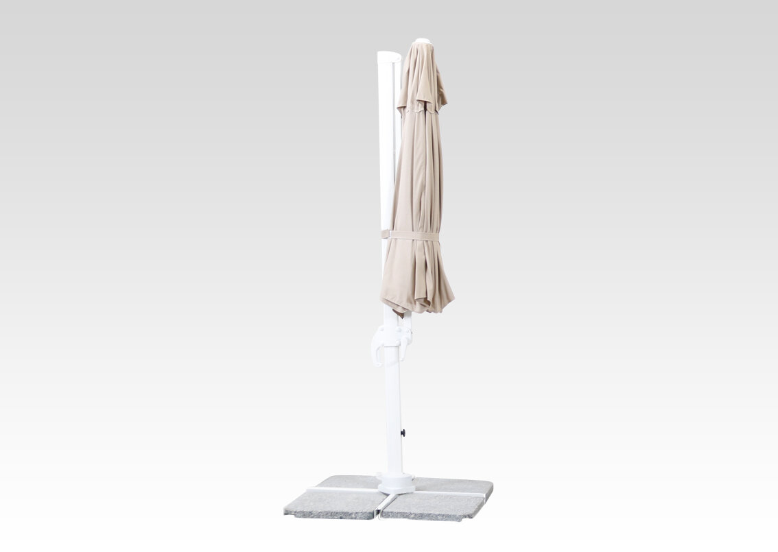 Sky är ett mycket praktiskt och bra hängparasoll med en arm som gör att ”taket” hänger från sidan. Vinkeln går enkelt att justera med hjälp av handtaget som skjuts upp och ner längs stången. Tack vara att det frihängande parasollet är väl balbanserat så krävs inte mycket kraft för att föra handtaget upp och ner längs sidan. Det är också med hjälp av handtaget och veven som man fäller upp och ner det hängparasollet.
