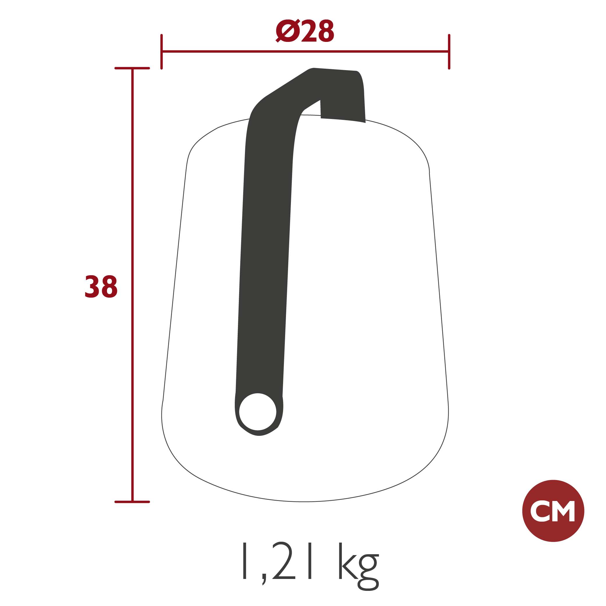 Vill man ha lampan hängande så finns en ställning självklart i samma färg som lampans handtag. Till denna lite större lampan passar den större ställningen bäst.