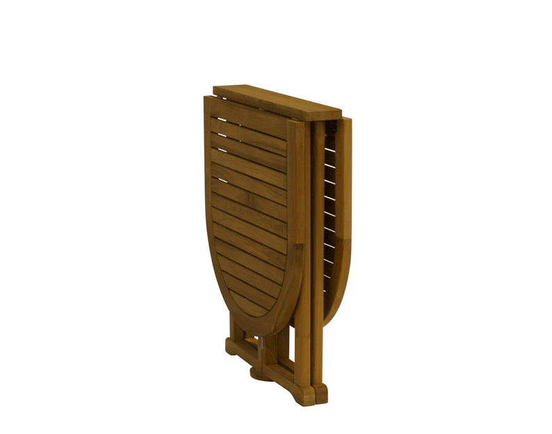 Ett praktiskt och trevligt litet balkongbord i en fantastisk teakkvalitet. Bordet har en benkonstruktion för att man inte skall behöva sparka på några bordsben i onödan. Då det är en typ av slagbord kan man fälla ihop det till ett ca 20 cm tjockt paket.