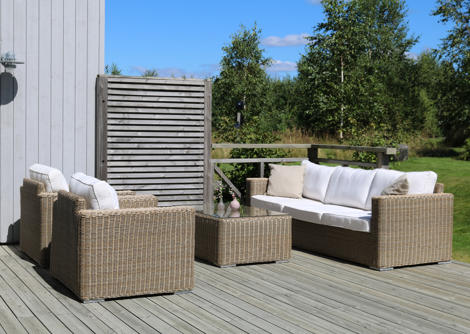 Möbelskydden är gjorda i i kraftig polyesterväv som är plastad på insidan och helt vattentät. På så sätt kan ni låta dynorna ligga kvar i gruppen och slipper släpa dem fram och tillbaka varje dag.