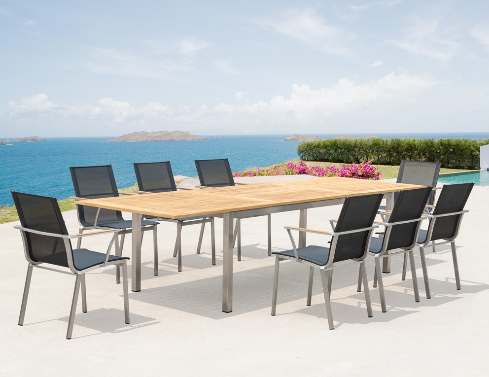 I utfällt läge så växer bordet med ytterligare 1 meter, vilket gör att man får plats för en stol ”utanför” benen på varje sida och i varje ände. Om man dessutom utnytjar nocken kan man altså sitta 12 personer runt bordetutan problem.