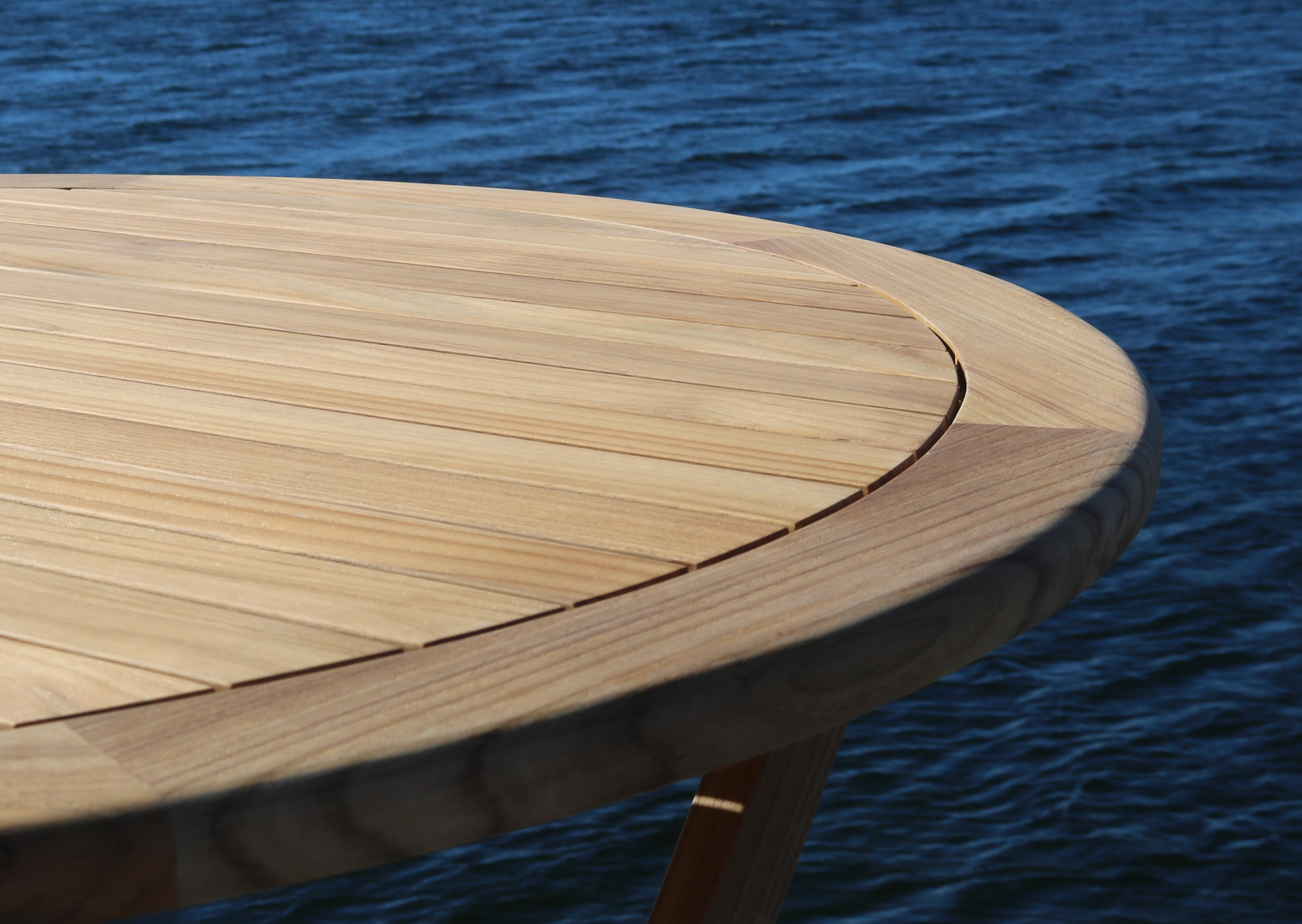 Ett fint runt fällbord i förstklassig teak.