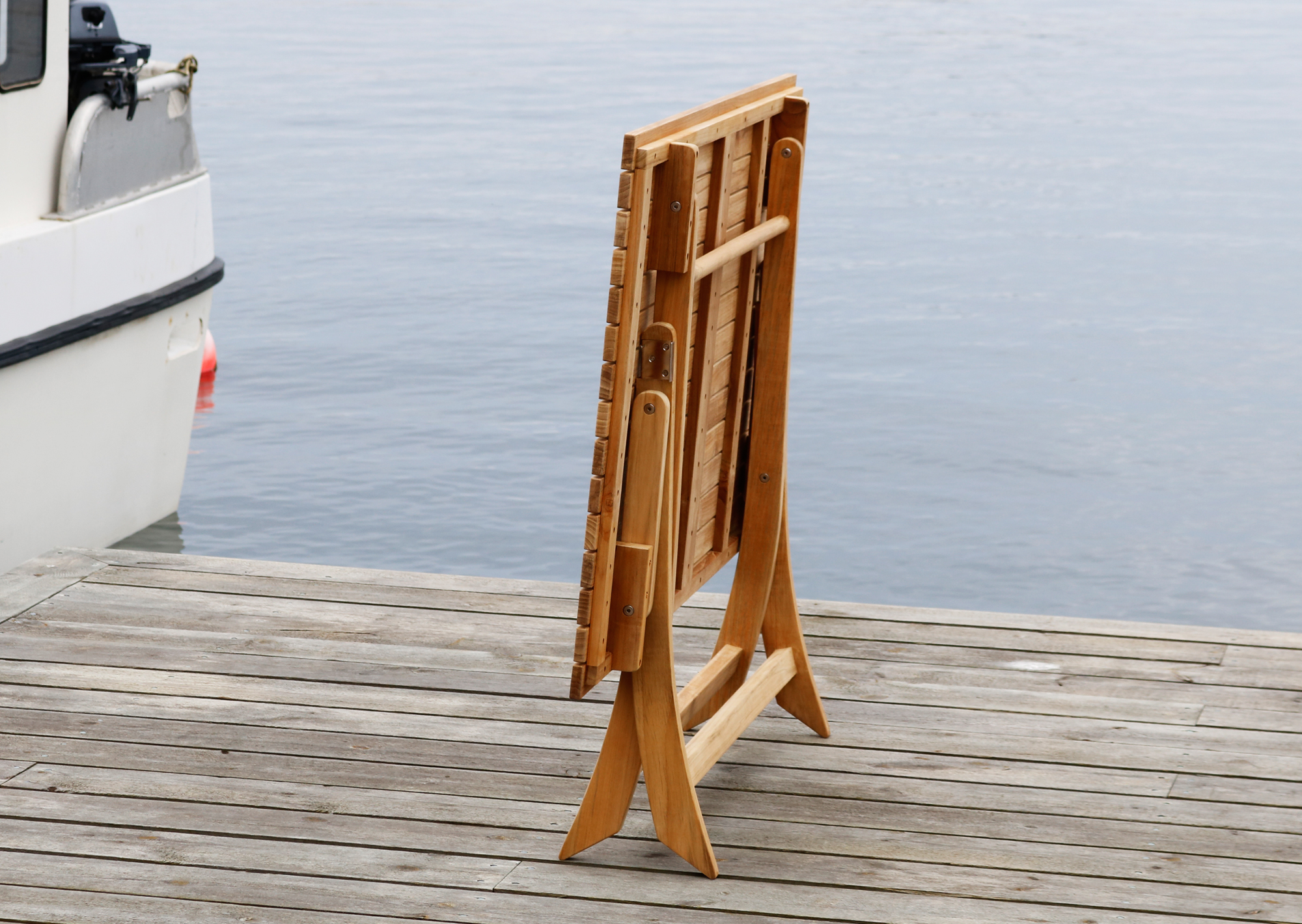 Teaken är av absolut högsta kvalitet. Bordet är hopfällbar till ett platt paket.
