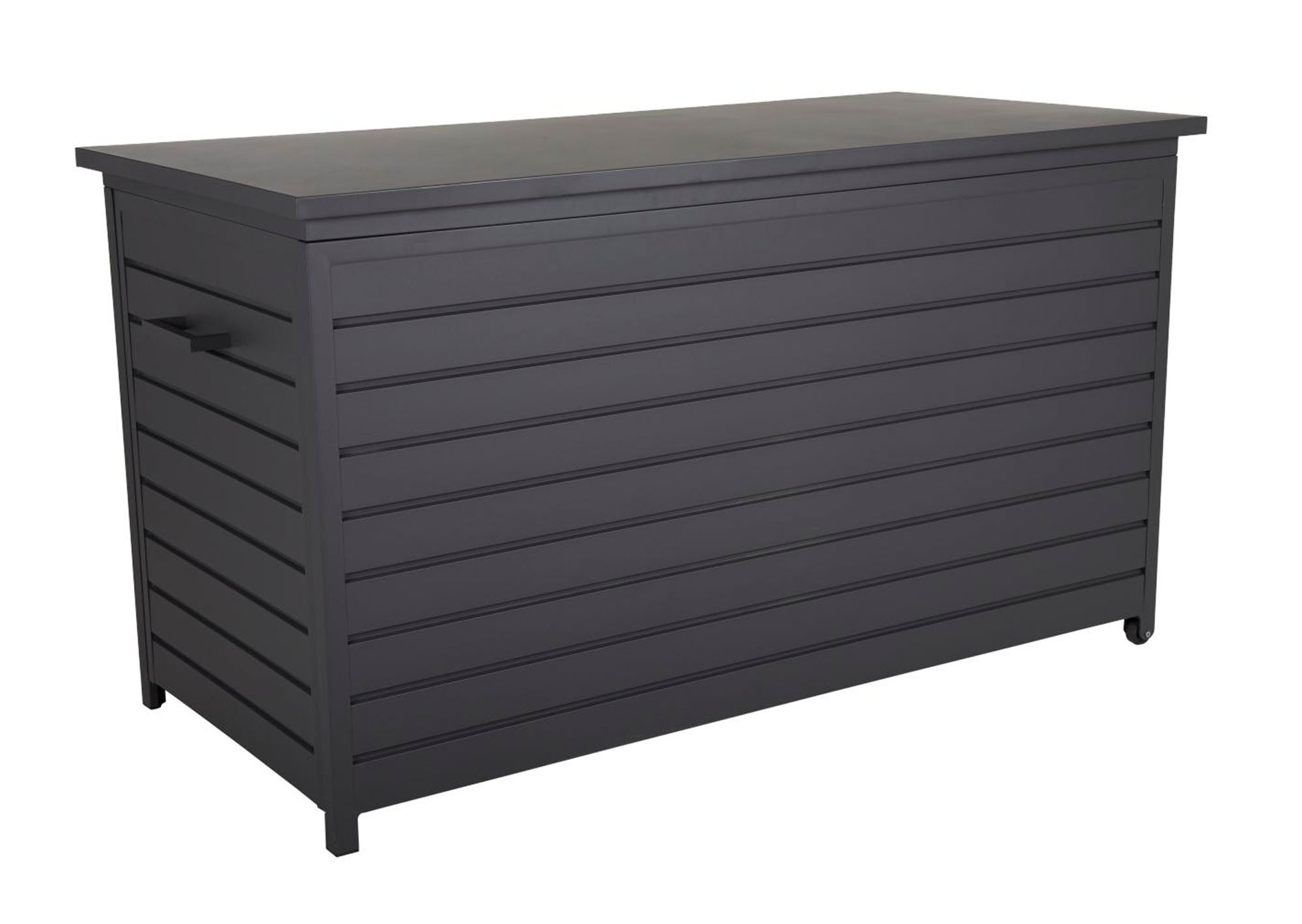 Rejäl dynbox anpassad för lounggruppsdynor. Boxen är gjord i aluminium. Locket går över kanten vilket gör att vatten inte kan krypa in den vägen. Gångjärnen i bakkant är stabila.