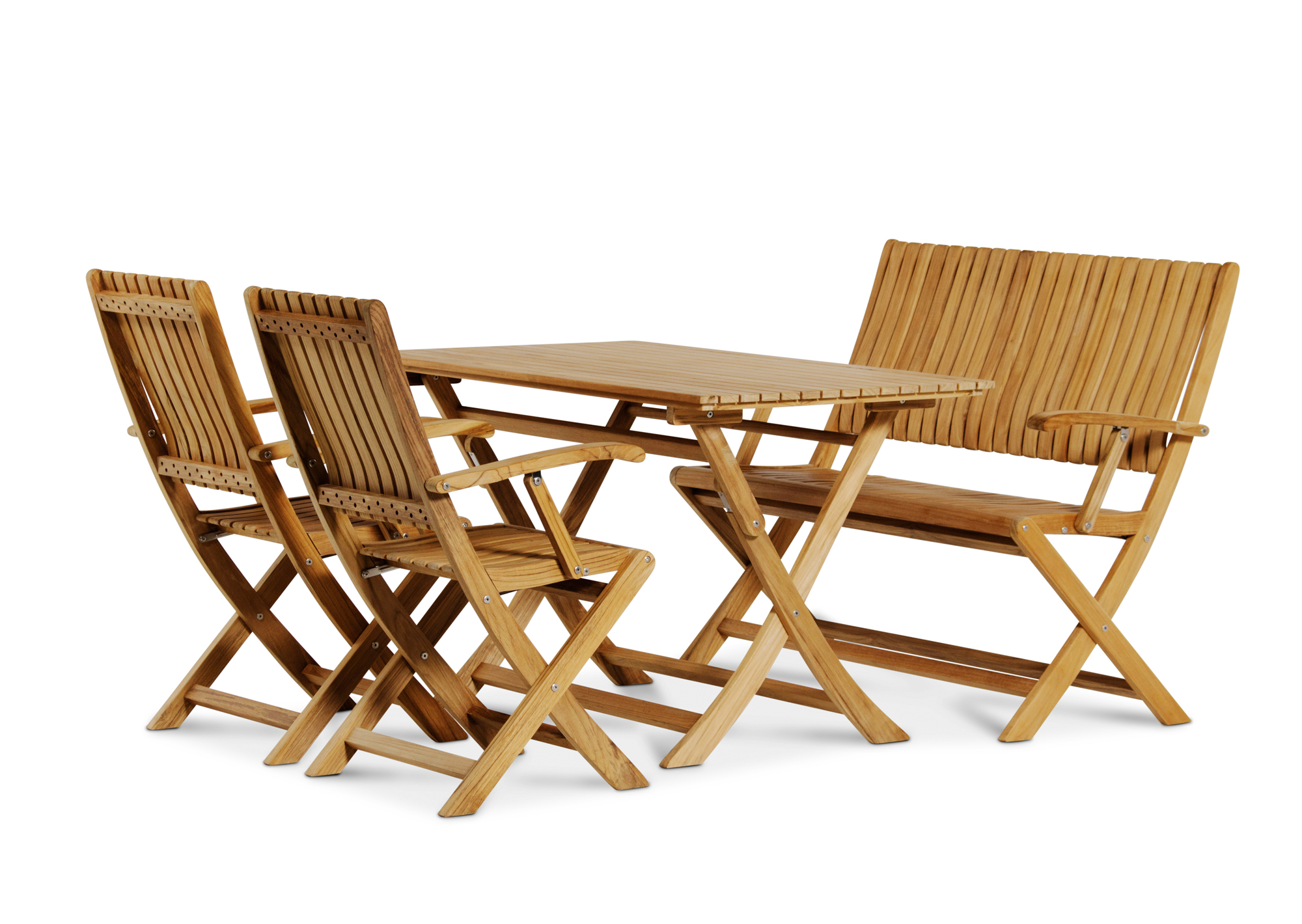 Roxyserien utgör en grupp med stolar bänk och bord i en elegant design med skålade sitsar för hög komfort. Teaken är av absolut högsta kvalitet.