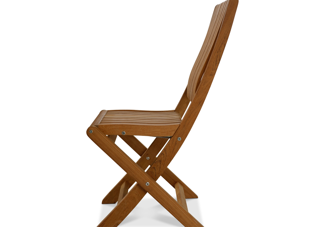 En hopfällbar stol med bra stöd i svanken helt i teak