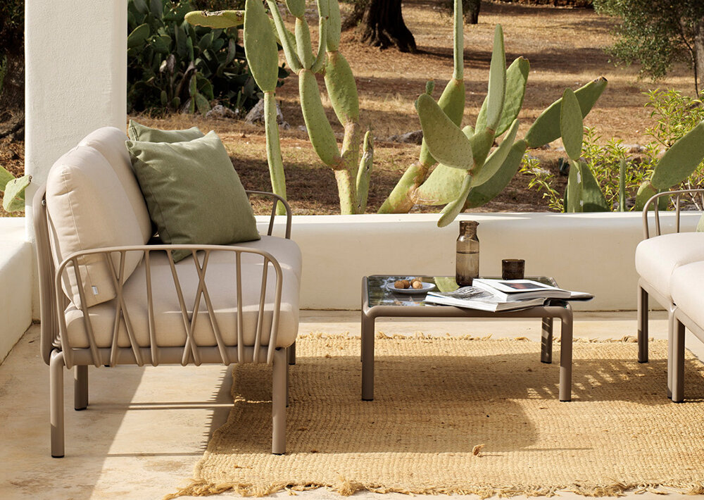 En snygg grupp i extremt tålig plast som gör att du har en grupp som klarar vädrets makter i många år framåt. Gruppen är dessutom byggbar med flera olika alternativa tyger. Design och produktion i Italien gör att ledtiden endast är några veckor.
