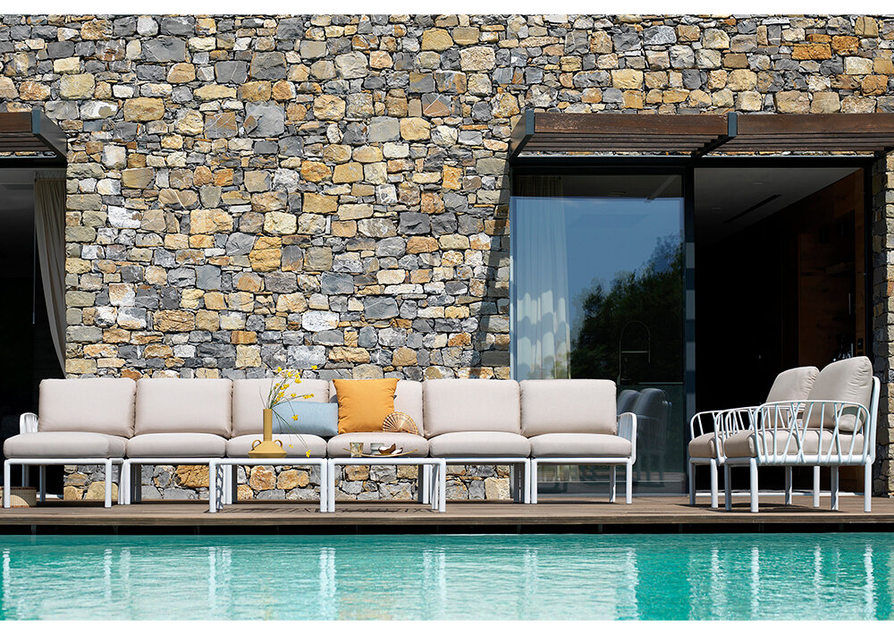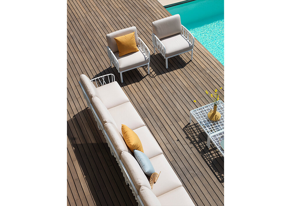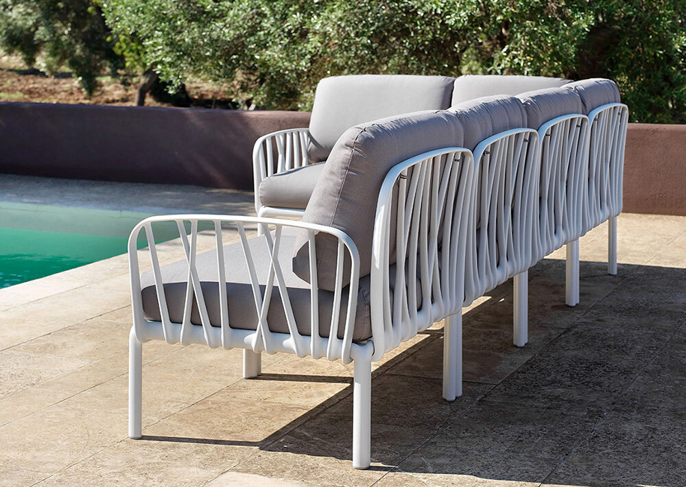 En snygg grupp i extremt tålig plast som gör att du har en grupp som klarar vädrets makter i många år framåt. Gruppen är dessutom byggbar med flera olika alternativa tyger. Design och produktion i Italien gör att ledtiden endast är några veckor.