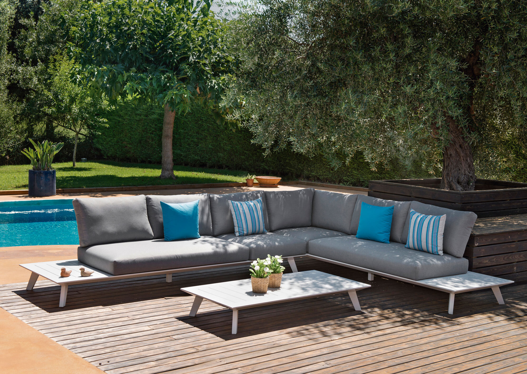 Eleganta Positano representerar verkligen den nya generationens loungemöbler. En grupp som kan byggas som hörngrupp men där det också finns goda förutsättningar att vara kreativ med modulerna.