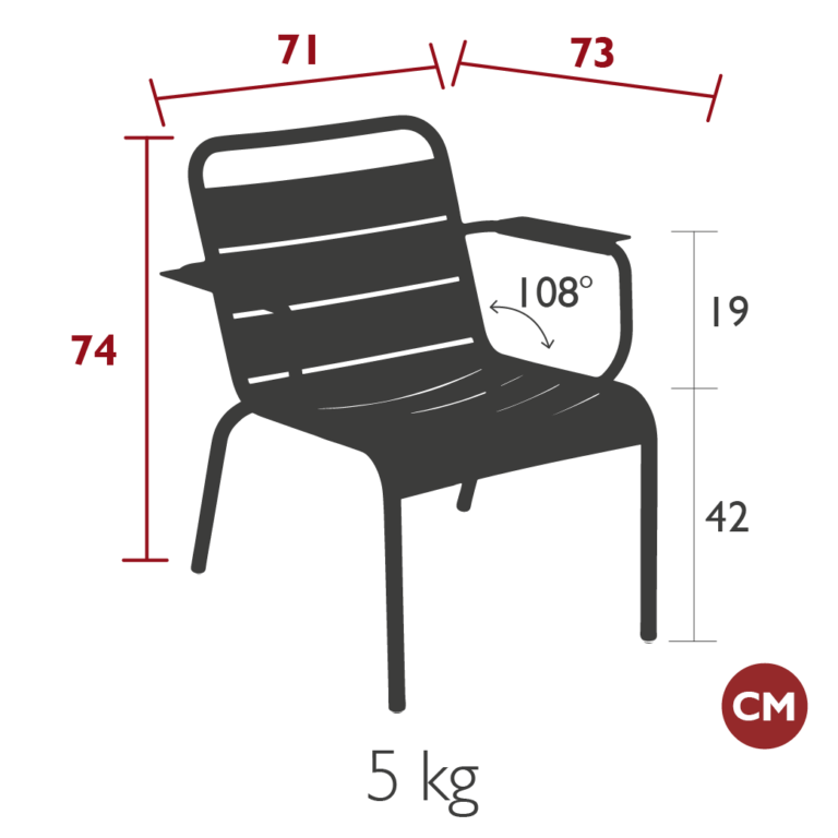 Ah… Luxemburg. Ett suggestivt, drömskt namn! Denna ikoniska kollektion från Fermob, uppdaterad av designern Frédéric Sofia, erbjuder en verkligt unik och tidlös stil! Unna dig den franska art de vivre. Skapa ett vilt elegant utomhus utrymme… Ingen anledning att offra komfort för stil, för denna fåtölj med armstöd har en ännu mer social känsla med sin upprätta design: ryggstödet är perfekt placerat så att du känner dig underbart bekväm under en drink före middagen eller en snabb måltid medan du sitter runt det låga Luxembourg-bordet med hjul. Njut av en känsla av totalt välbefinnande när du sitter på fåtöljens böjda lameller, utformade för att återspegla din kroppsform. Luxembourg-loungen, en trädgårds fåtölj i metall, är naturligtvis tillverkad med en lätt aluminium ram för att motstå UV-strålar och alla typer av väder. Denna möbel har designats för att hålla, även i havsluft. Denna tidlösa designerträdgårdsfåtölj garanterar ett verkligt unikt utseende för ditt utomhus utrymme! Allt du behöver göra nu är att välja mellan de 22 nyanserna i Fermobs färgkarta och bestämma om du vill kombinera stolen med det låga bordet Luxembourg med hjul och lounge fåtöljen från samma serie för en fantastisk utomhusmiljö!
