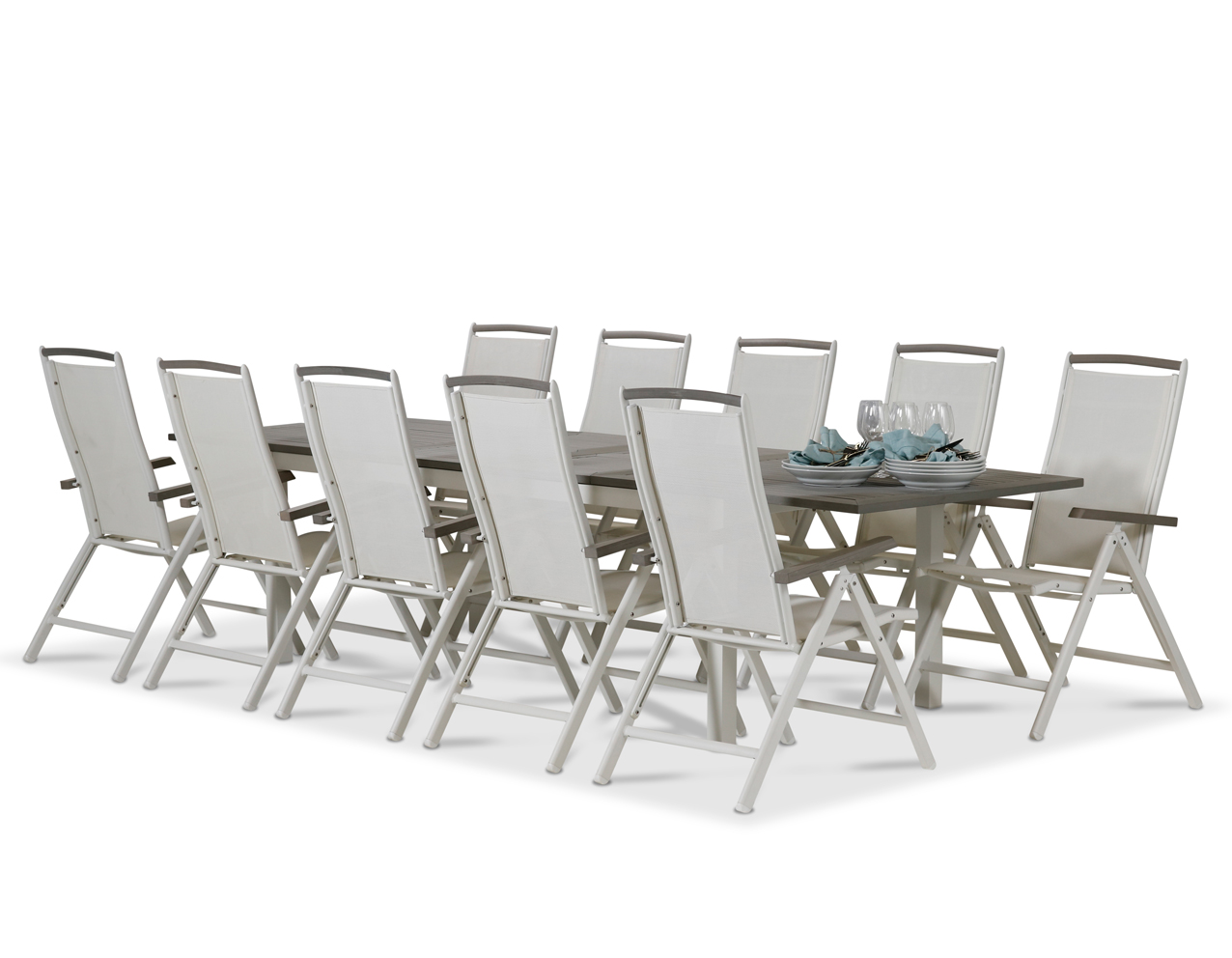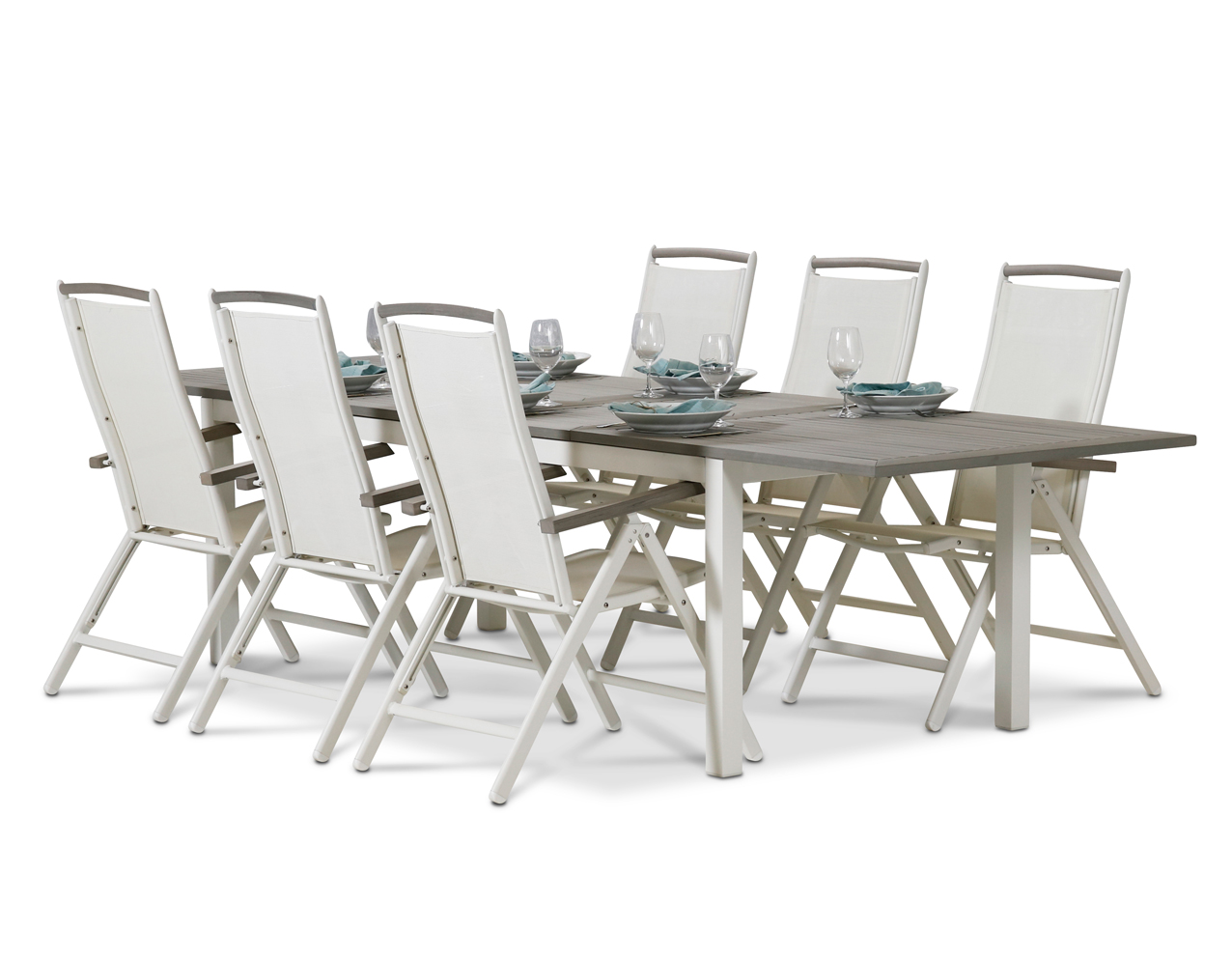 Den gråa underhållsfria nonwooden är ett både praktiskt och stilrent alternativ till teak. Ett mycket populärt material som går att slipa på om man skulle få fläckar eller göra annan åverkan, det är nämligen ingen lack, utan genomfärgat.