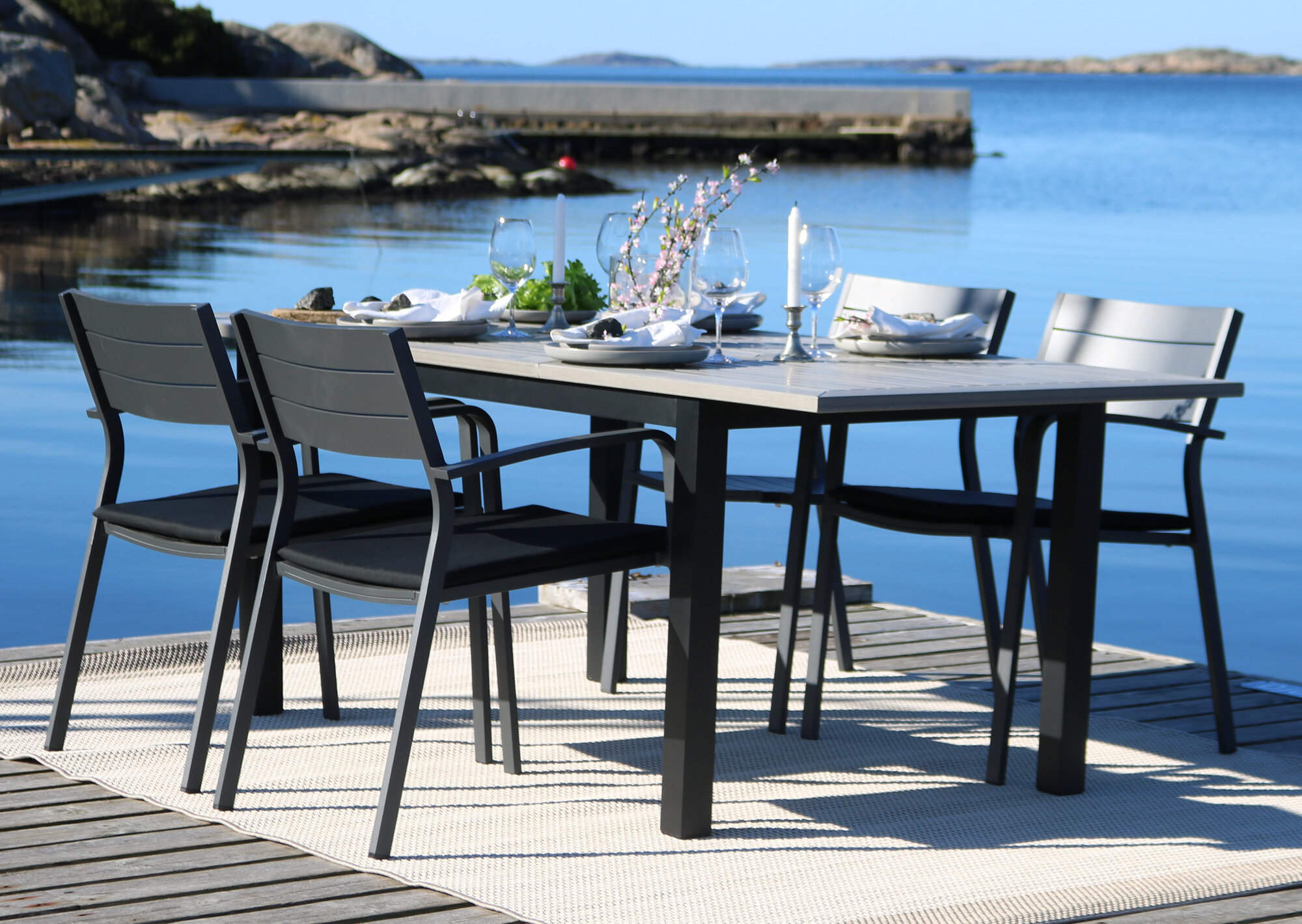 Den gråa underhållsfria nonwooden är ett både praktiskt och stilrent alternativ till teak. Ett mycket populärt material som går att slipa på om man skulle få fläckar eller göra annan åverkan, det är nämligen ingen lack, utan genomfärgat.