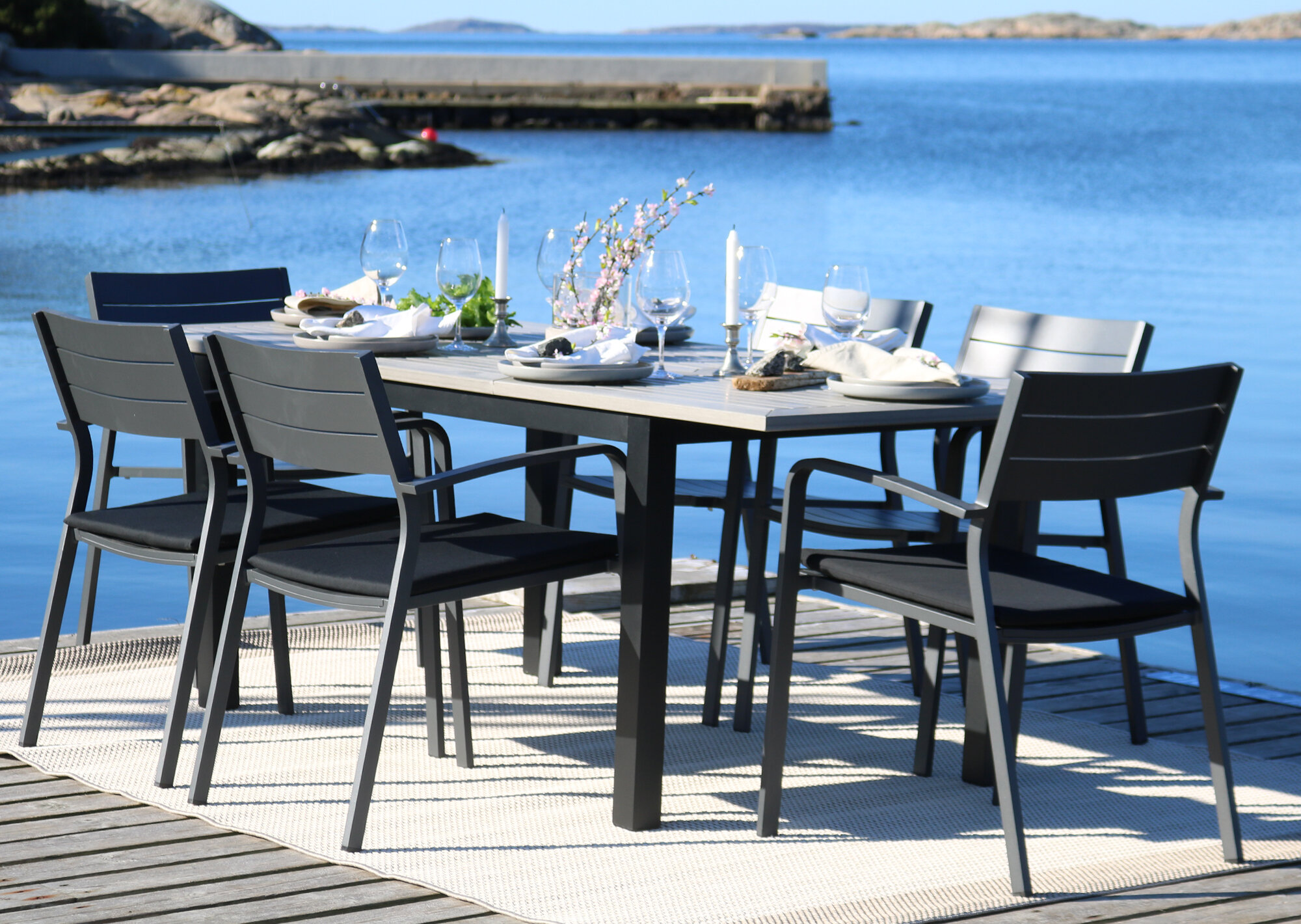 Bordet kombinerar fint med den stilrena Luis stolen helt i aluminium, en sittvänlig matstol. En modern stol med minimalt underhåll.