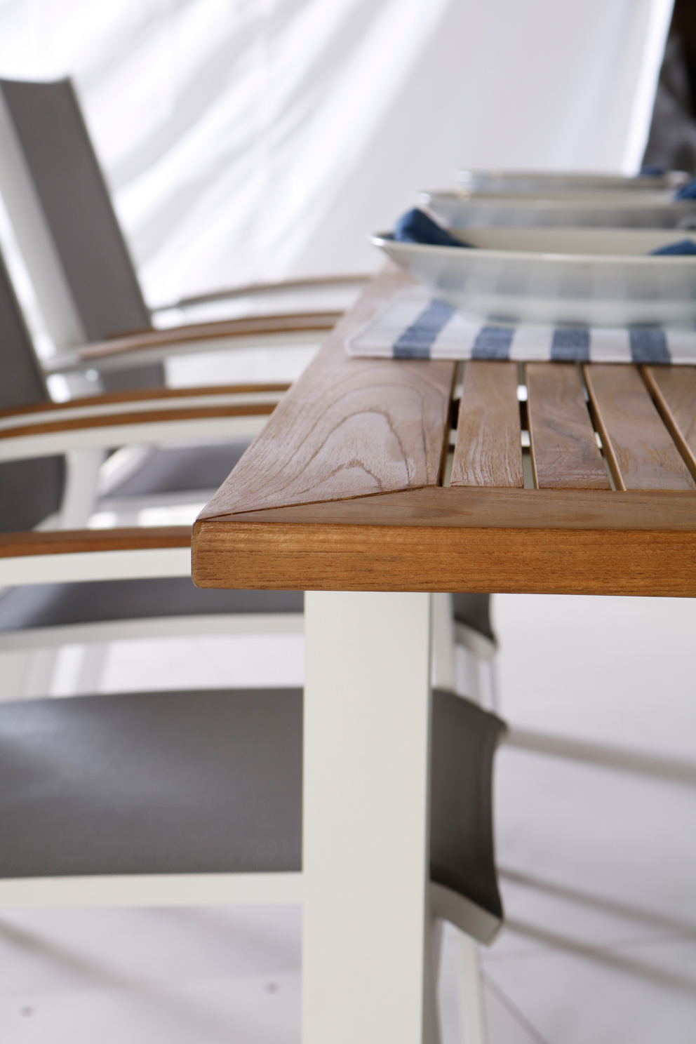Bordet kombinerar fint med den stilrena Vougestolen, en sittvänlig matstol. Hög nog i ryggen för tillräckligt stöd och låg nog för ett stilrent utseende.