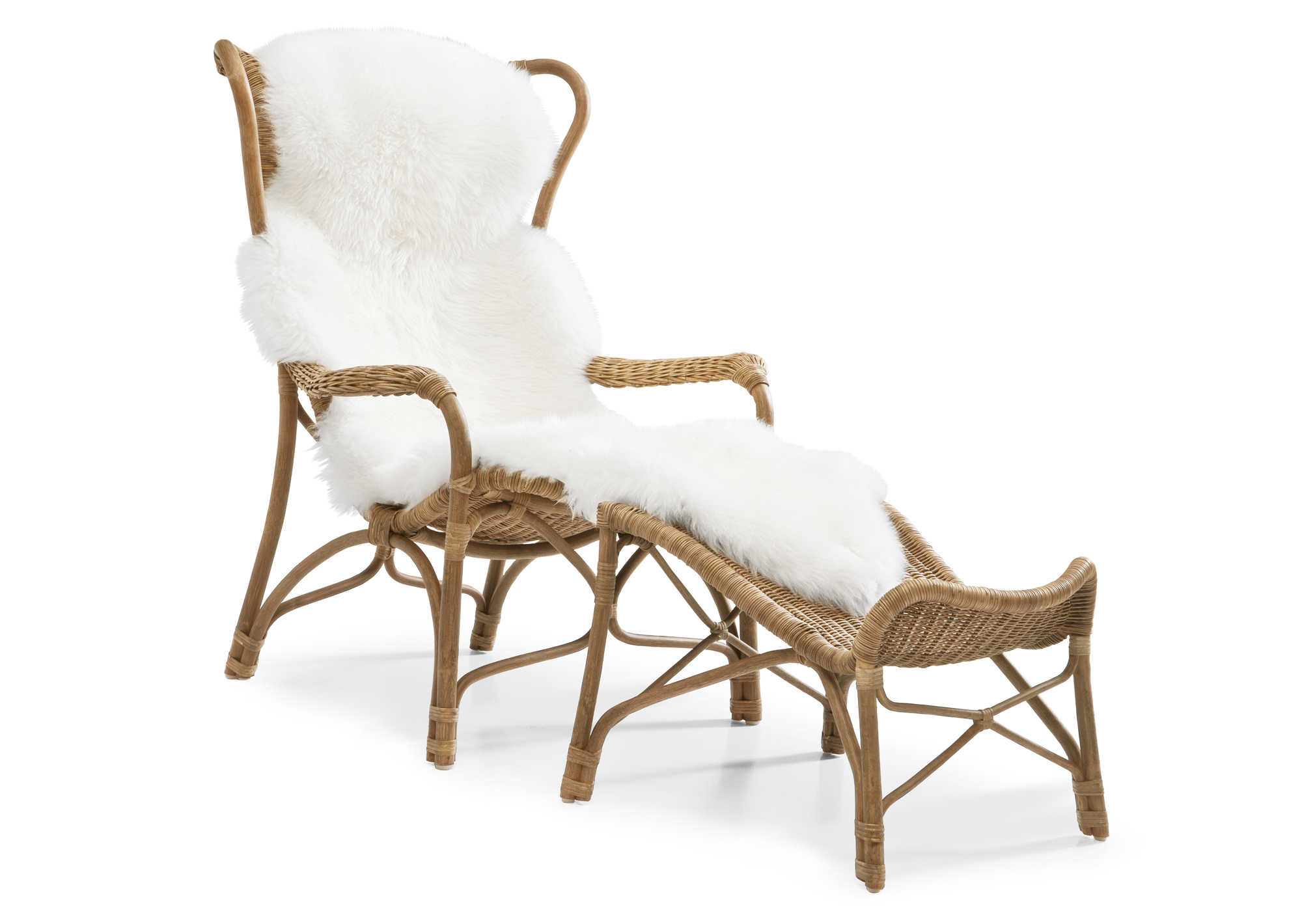 En underbar fåtölj i naturlig rotting. Då den är gjord i naturmaterial bör den gärna stå skyddad från vädrets makter. En riktigt bra stol att sitta i, och med en mjuk pläd i blir den ännu bättre.