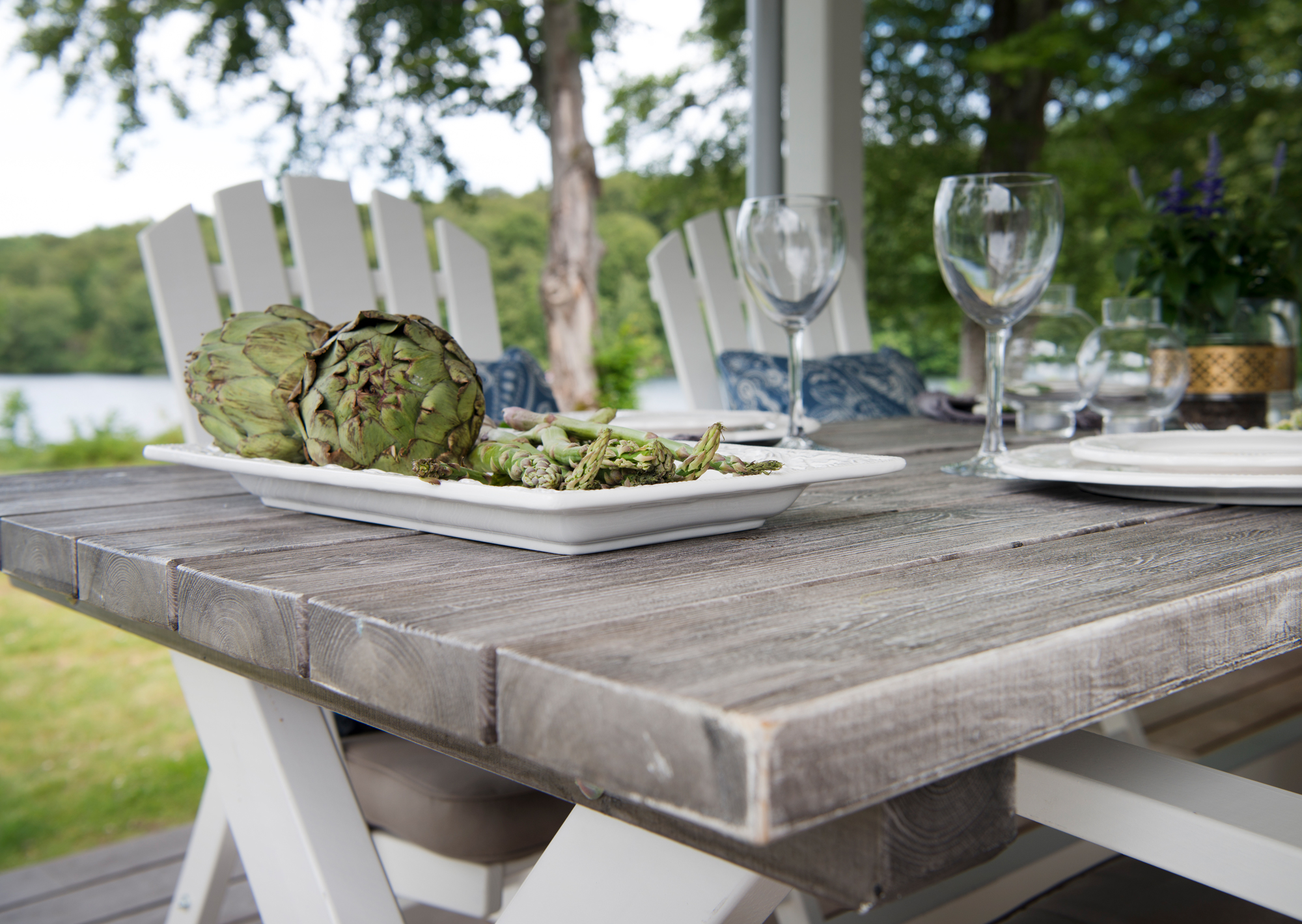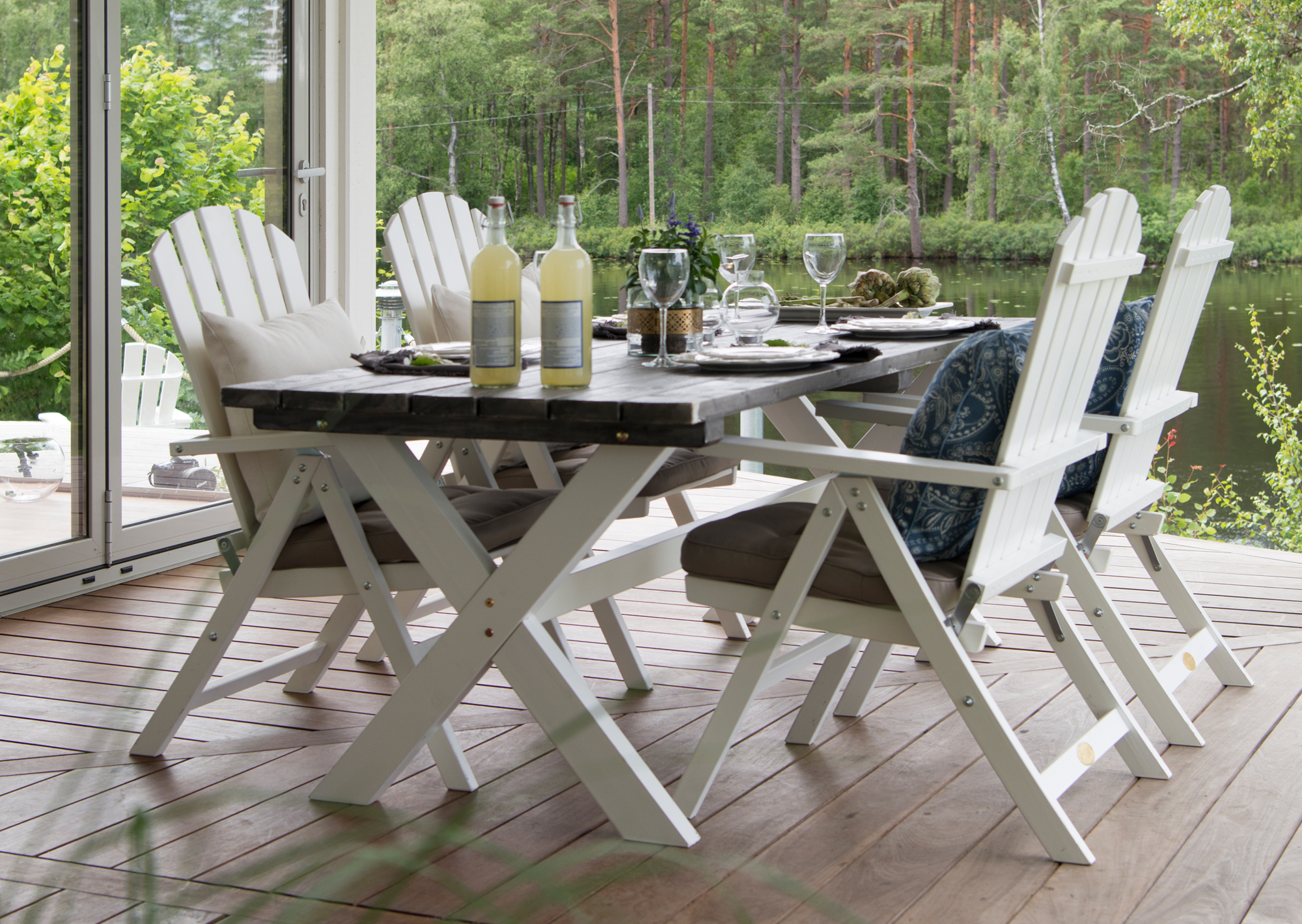 Bordet passar utmärkt både till stolar i vitmålad furu, men även till konstrottingstolar.