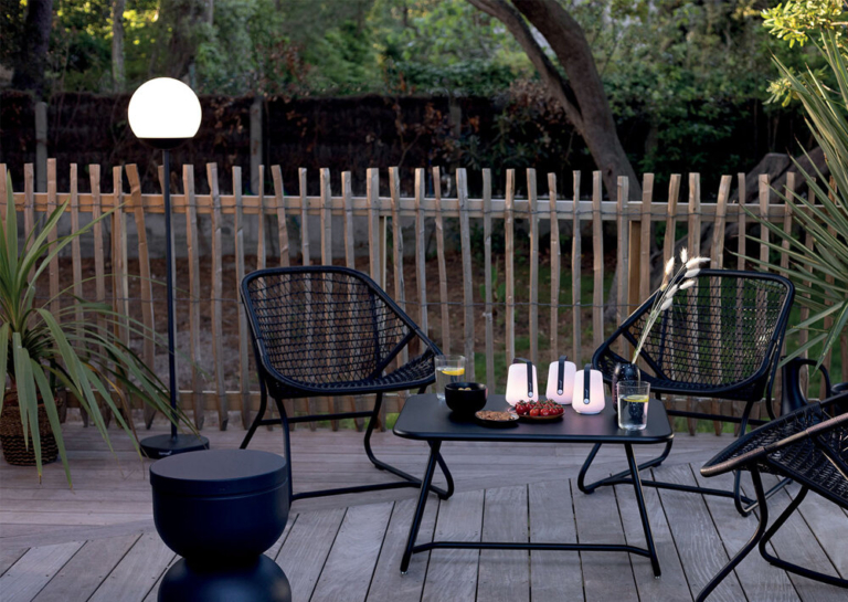 Franska Fermob’s känsla för design och lättskötta möbler är tydlig även in denna grupp. Inga dynor att bära in och ut, inget underhåll, bara att njuta.