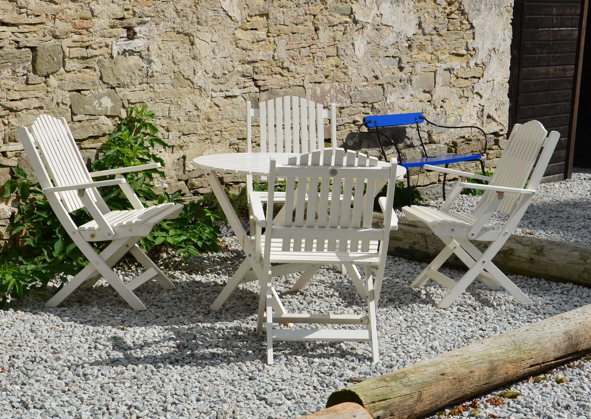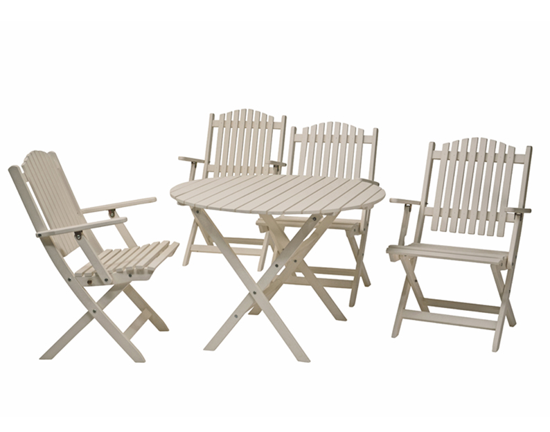 Guteforms furu är tagen från den långsamt växande Gottländska skogen och är en kvalitéts produkt rakt igenom. Stolar och soffa är hopfällbara med hjälp av en liten sprint under sitsen. Bord och bänkar fälls ihop efter att man lossat på 2-4 muttrar.