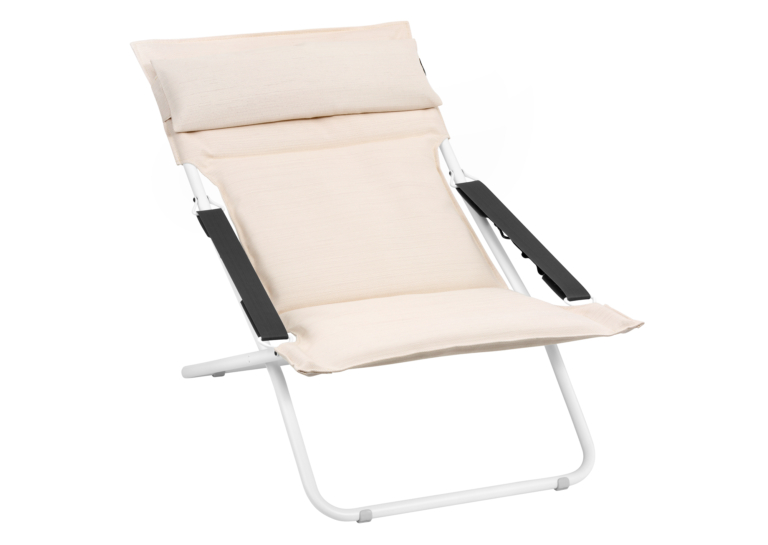 Transabed från Lafuma har trots sitt något lustiga namn tagit den svenska marknaden med storm. Den extremt bekväma solstolen (gärna kompletterad med den lilla pallen ”Next”) fungerar både att ligga och slappa i men också som en loungefåtölj som du enkelt flyttar runt beroende på var och hur du vill använda den.