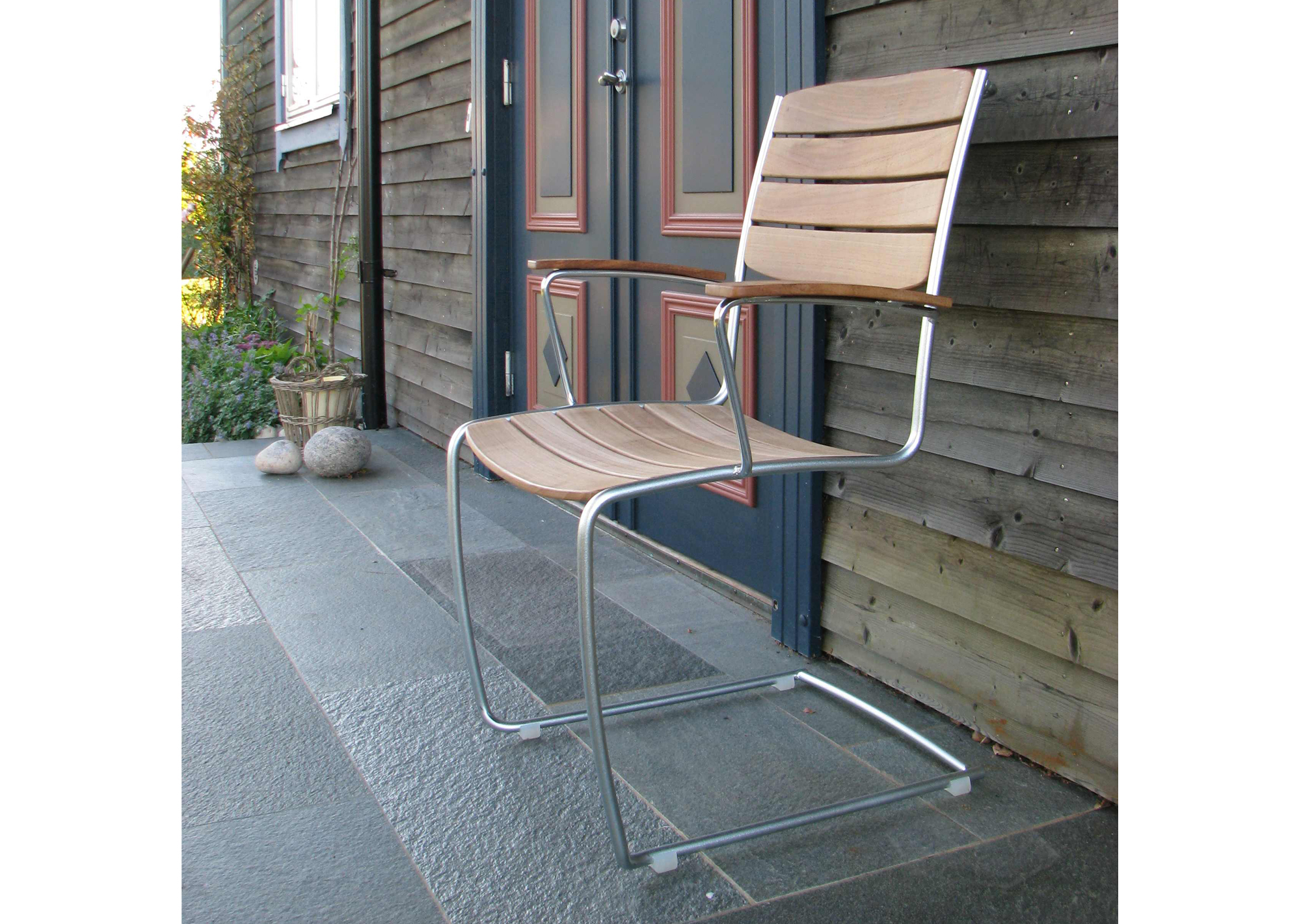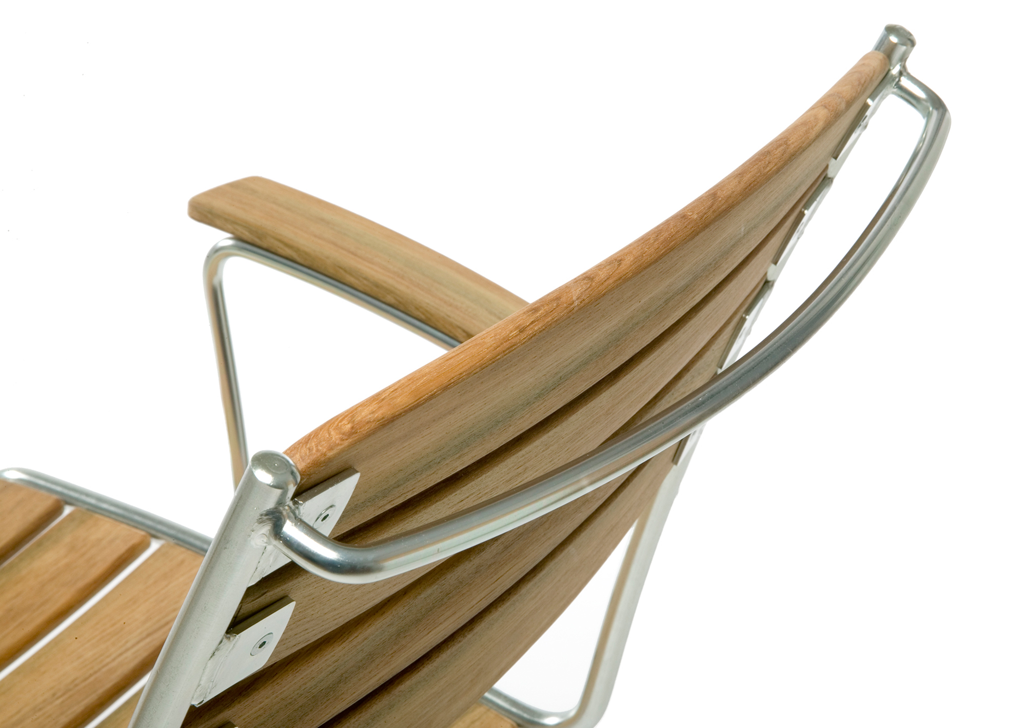 Eleganta Spring finns i tre varianter, svart eller vit textilene eller teak i sits och ryggen. En bekväm och lättskött utemöbel.