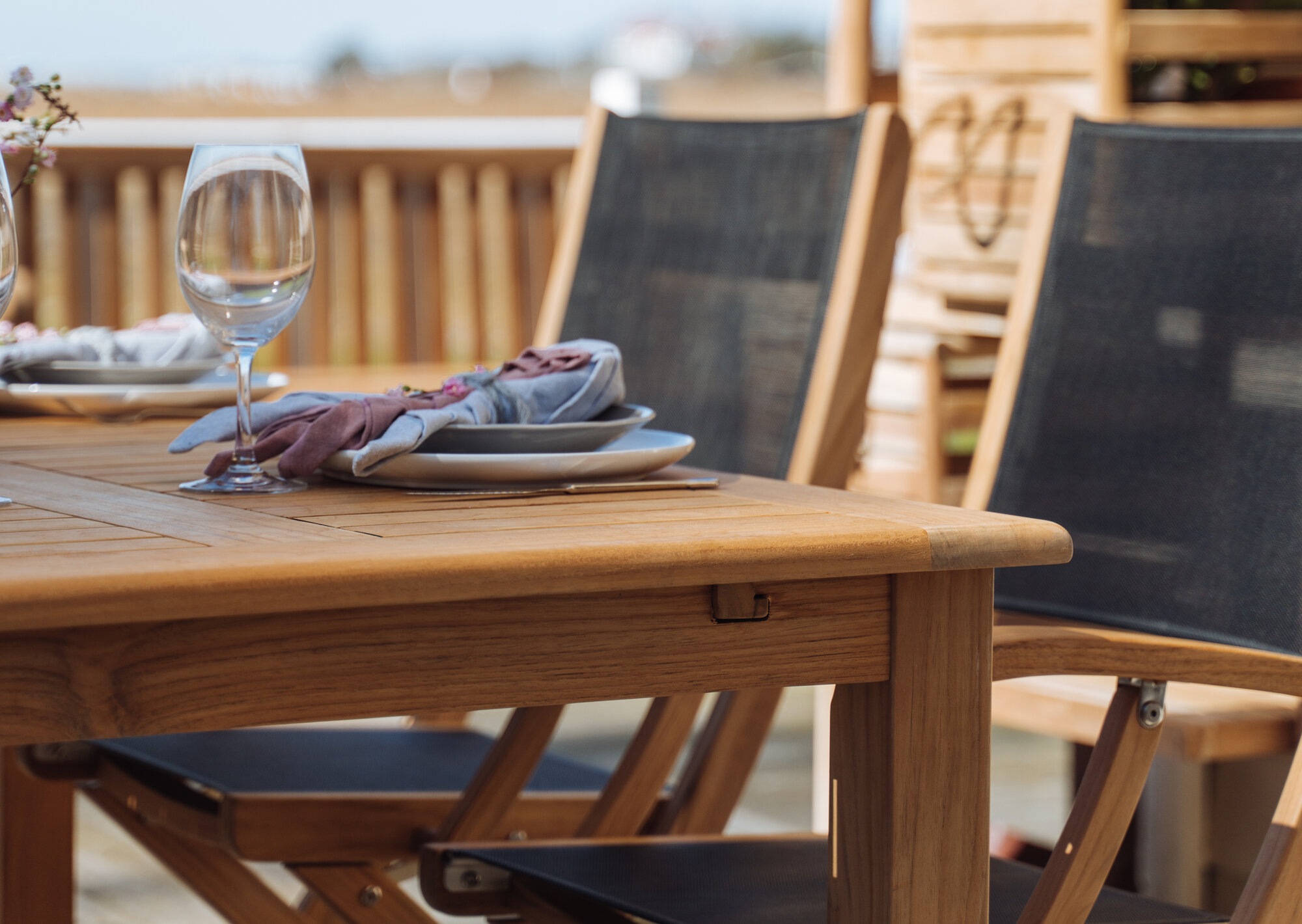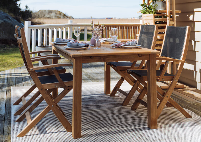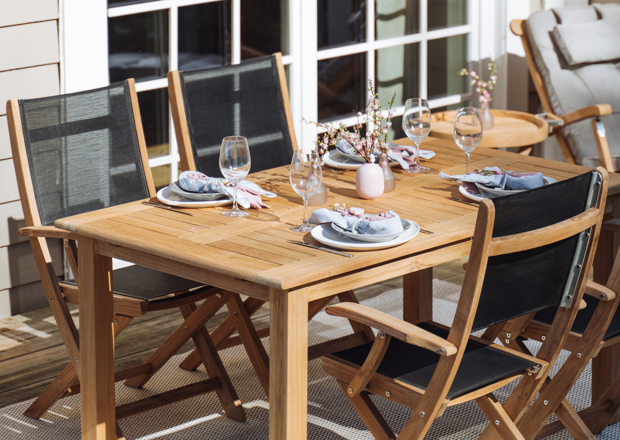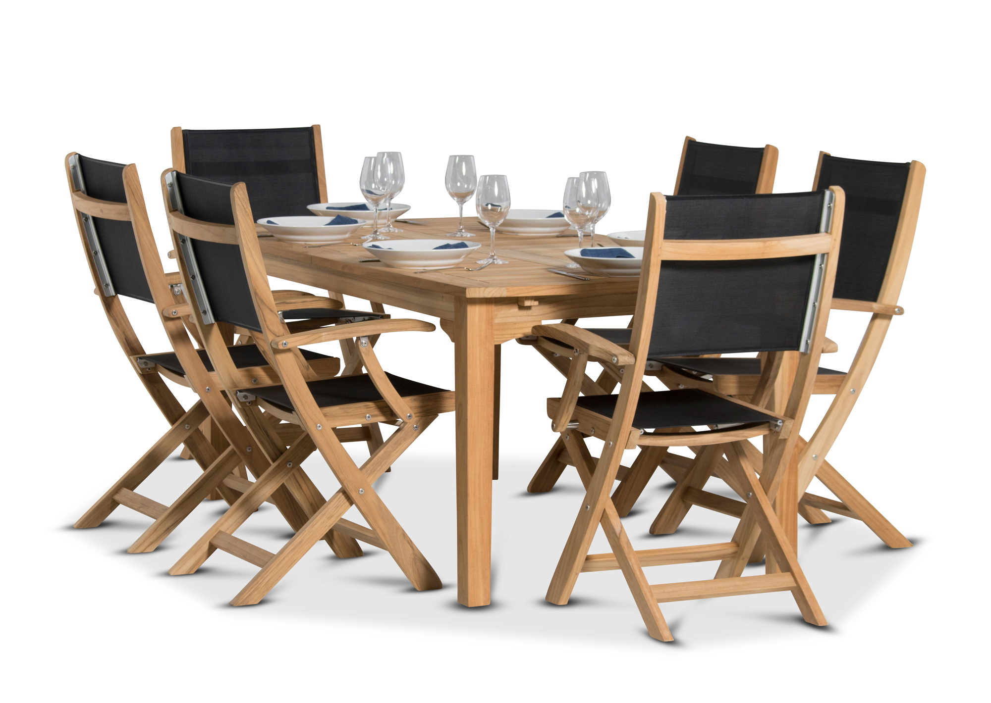 Teakgrupp Calle förlängningsbord & Air Karmstol