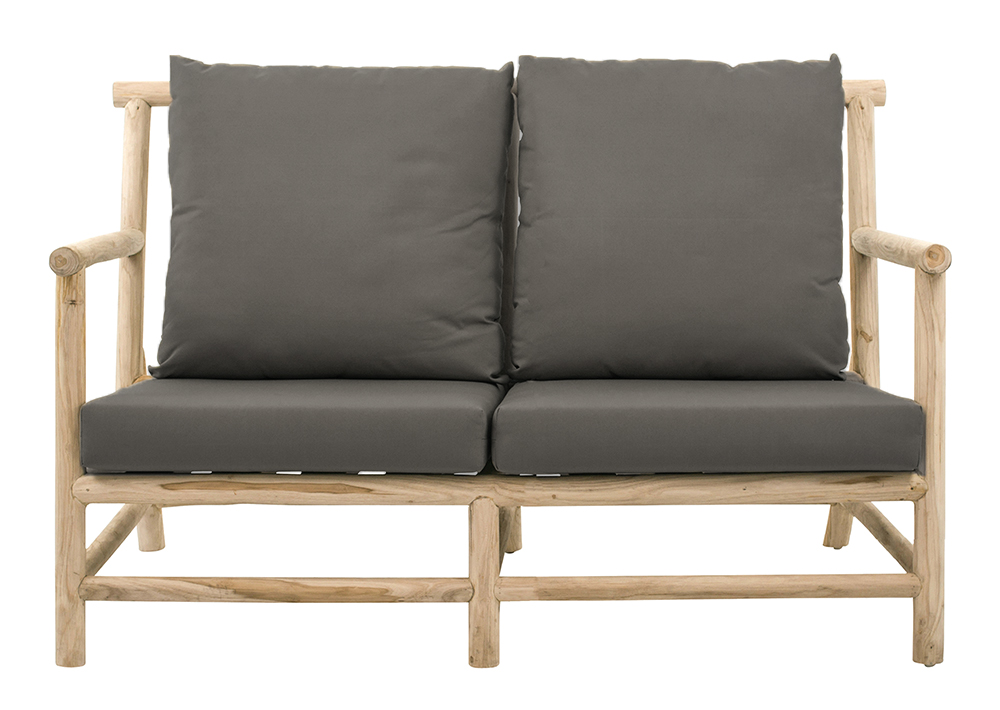 Soffa gjord i grenar från teakträd. De tjocka grenarna som bygger upp soffan ger den ett helt unikt uttryck. Dynorna är kraftigt vattenavstötande.